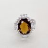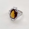 - Este deslumbrante anillo cuenta con un topacio marrón hidrotermal de alta calidad en el centro, rodeado por zafiros blancos. Es la combinación perfecta para un anillos con un diseño clásico y elegante.